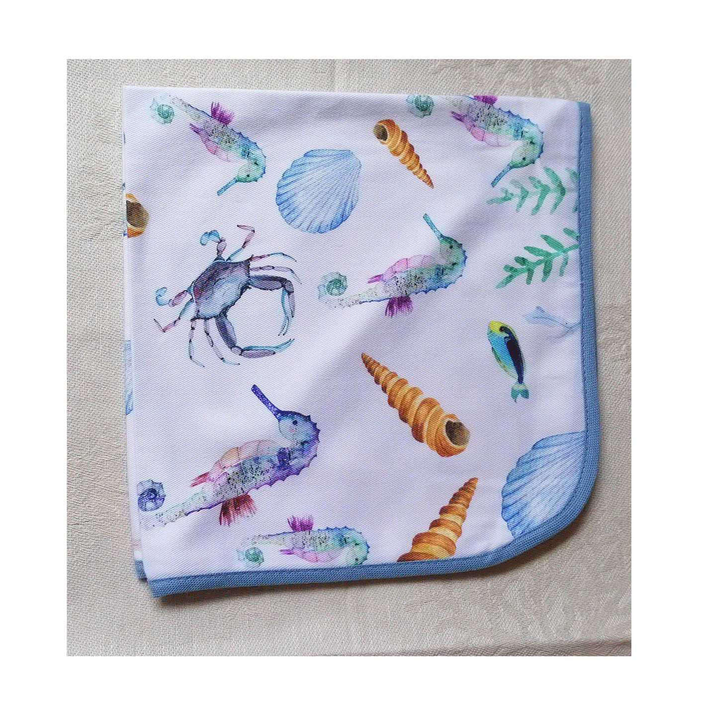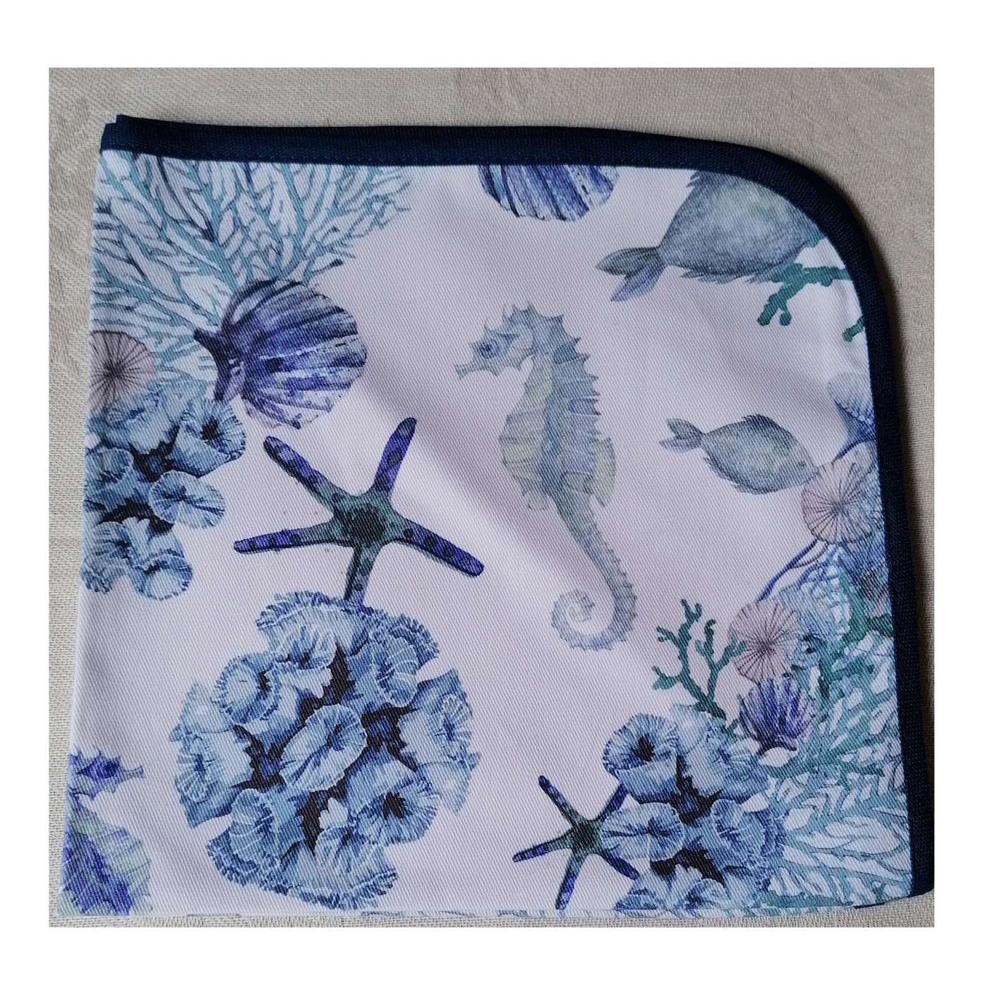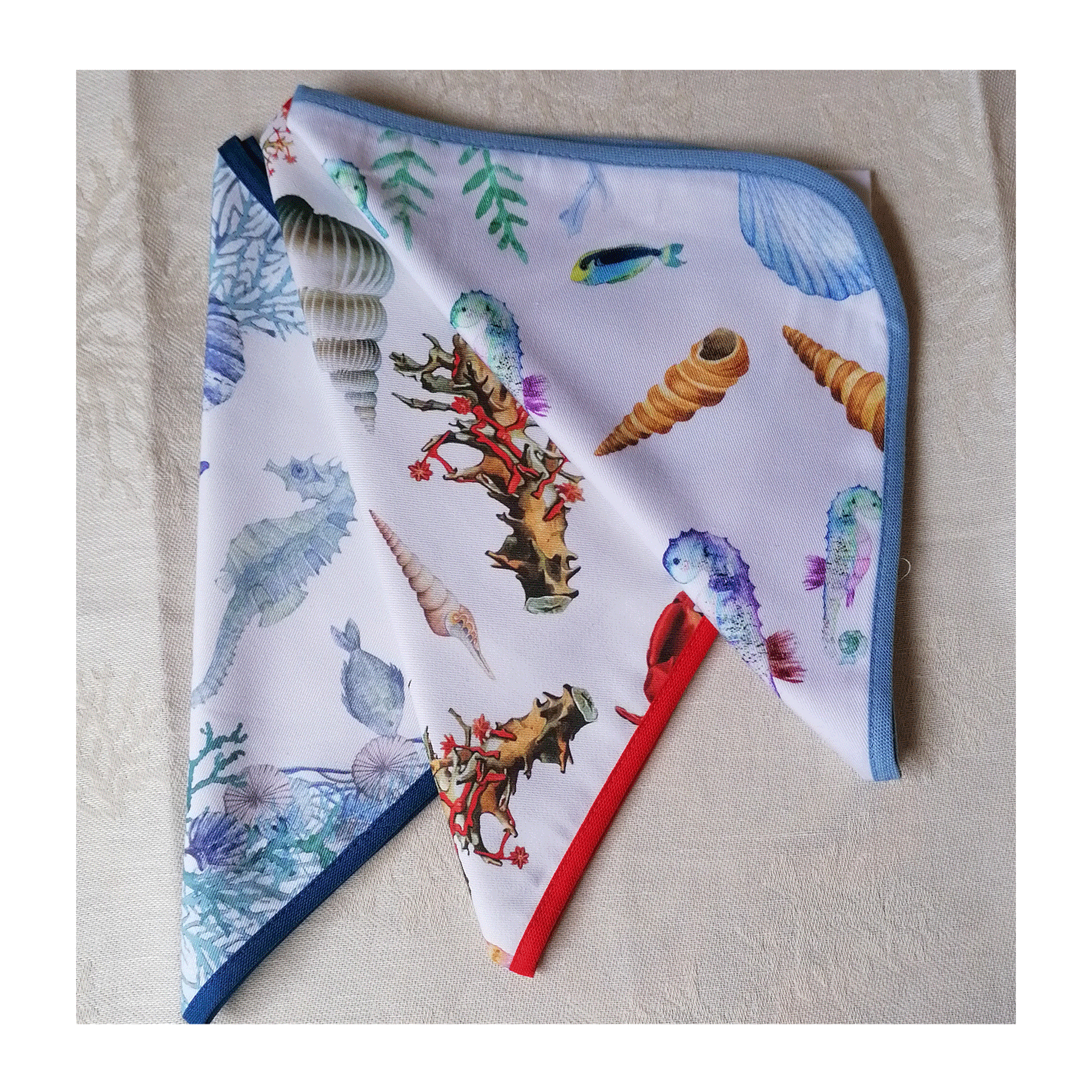 Tovaglioli 100% cotone con decoro sfumature del mediterraneo disponibile in 3 diverse varianti.