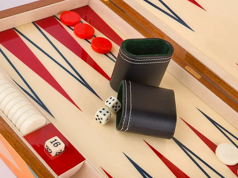 Upon opening Luxury Backgammon Set , you are greeted by a thoughtfully designed interior. The inside of the board includes designated spaces to neatly fit all the backgammon pieces, ensuring they are securely stored when not in use.