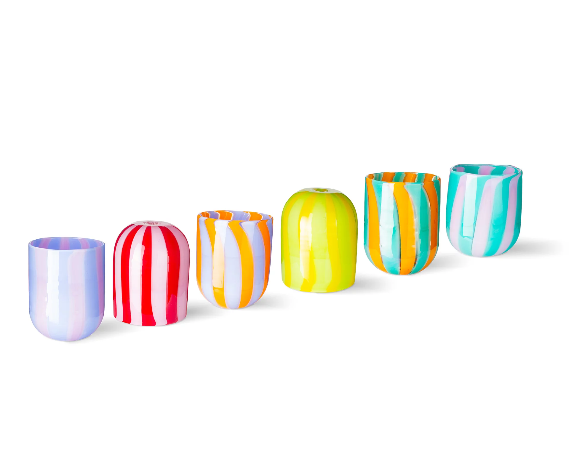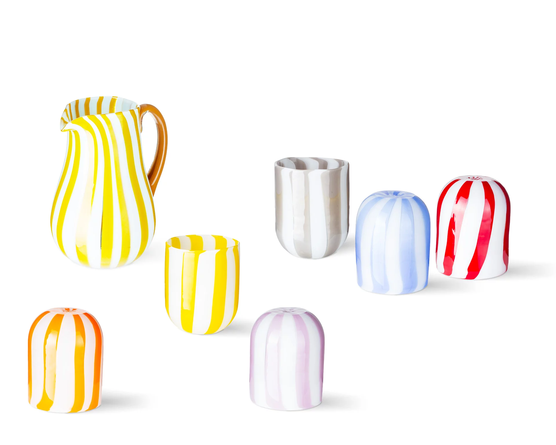 Handcrafted set in Murano glass with pastel colored vertical rods decoration available in different combinations.