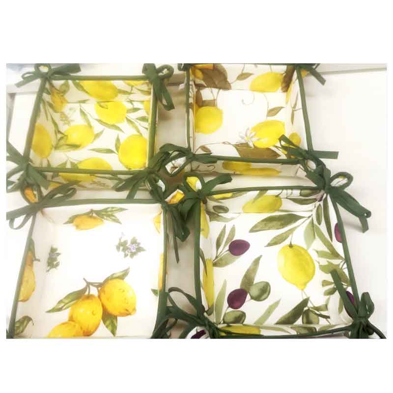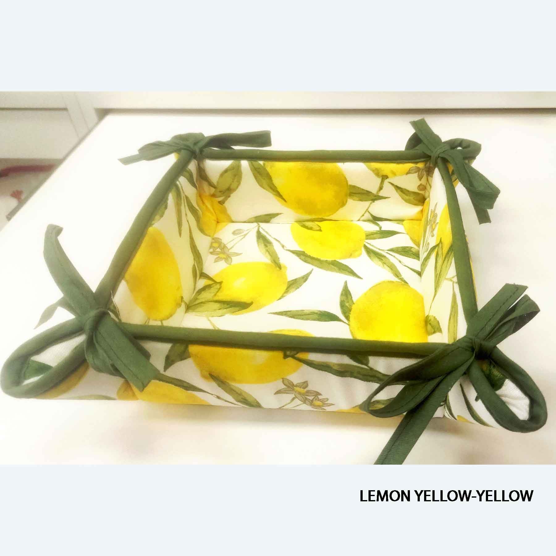 Square bread basket made of 100% cotton with lemons in different patterns: Rosanna lemon, yellow-yellow lemon, light lemon, dark lemon, lemon-olive